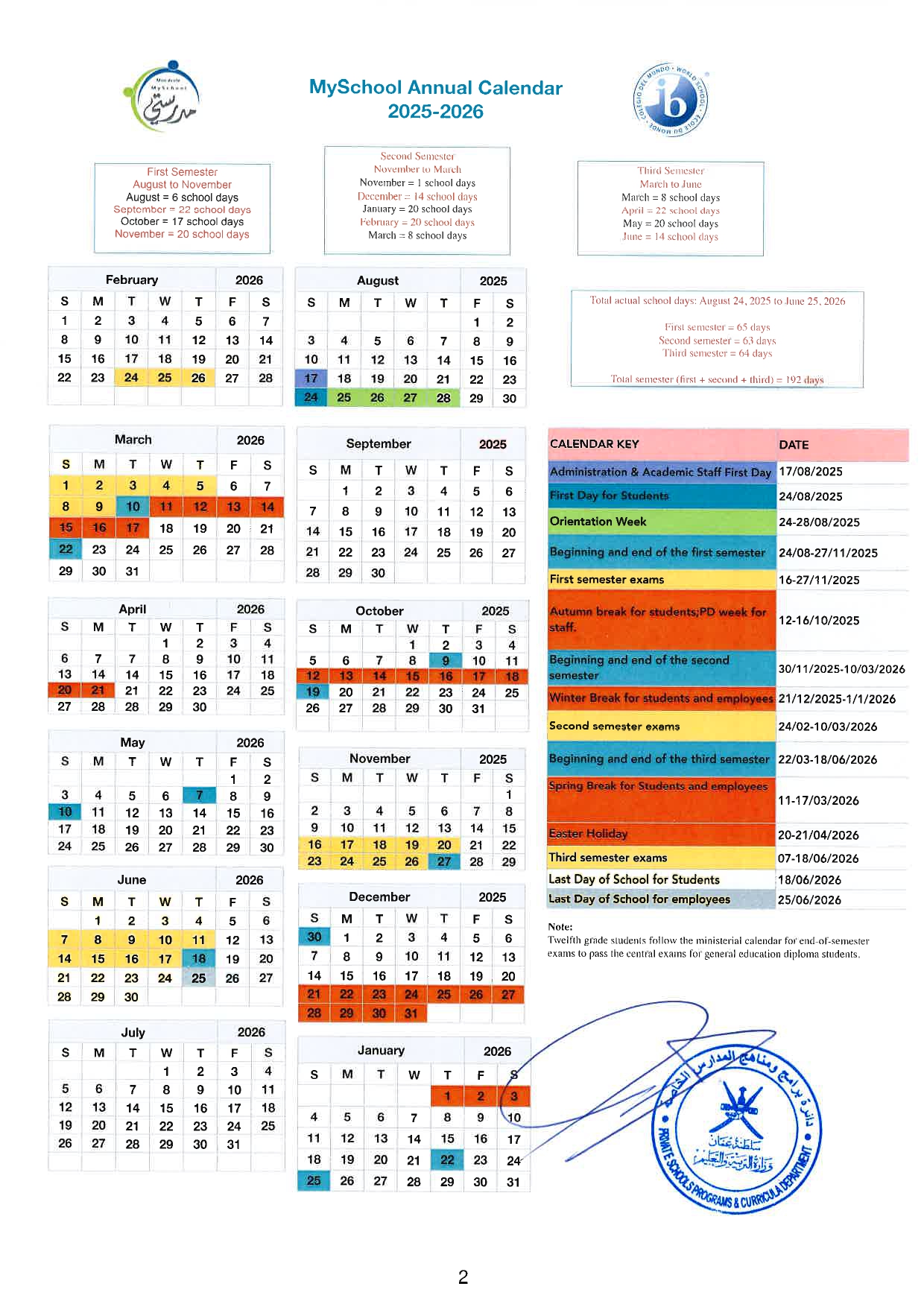 MySchool Calendar
